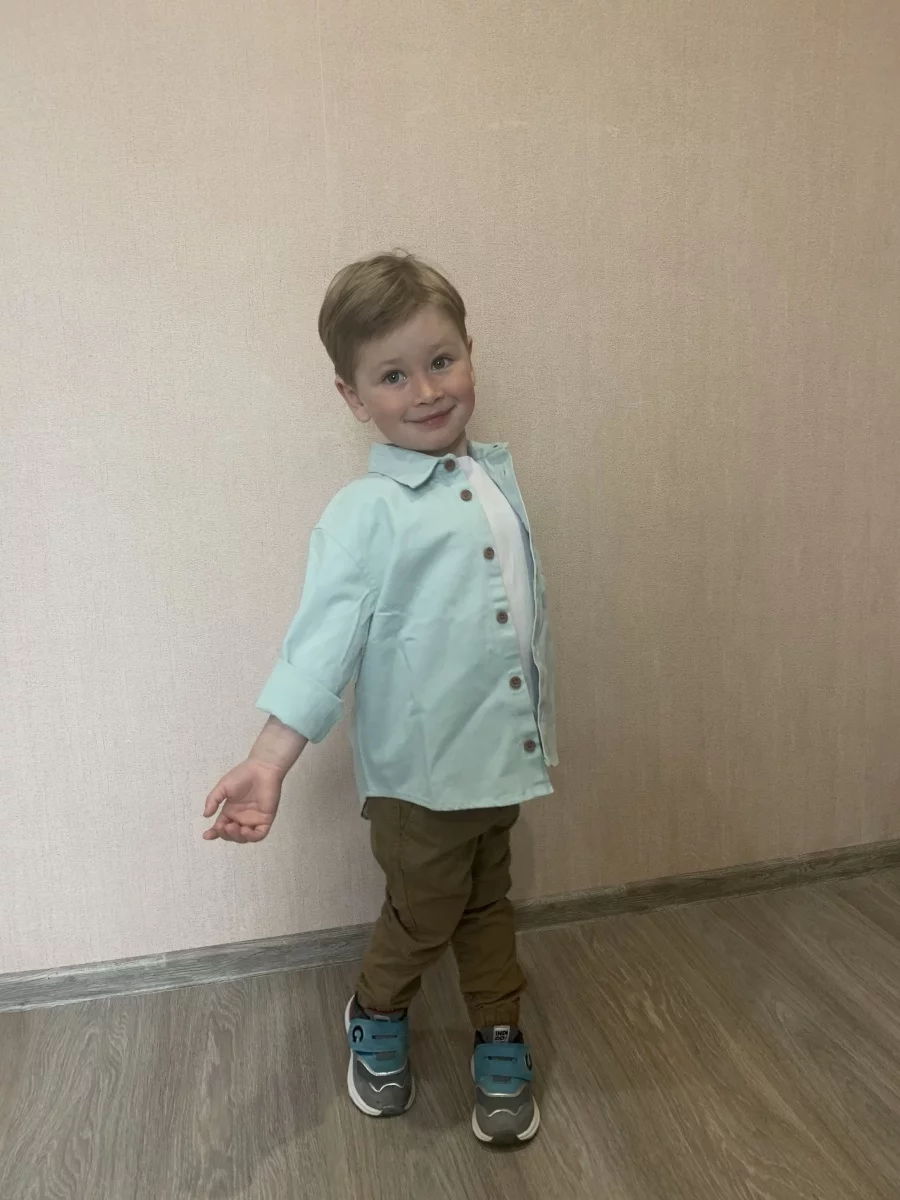 Очень общительный ребёнок, нет никакого стеснения при чужих людях, хорошо разговаривает. Любит петь и танцевать.